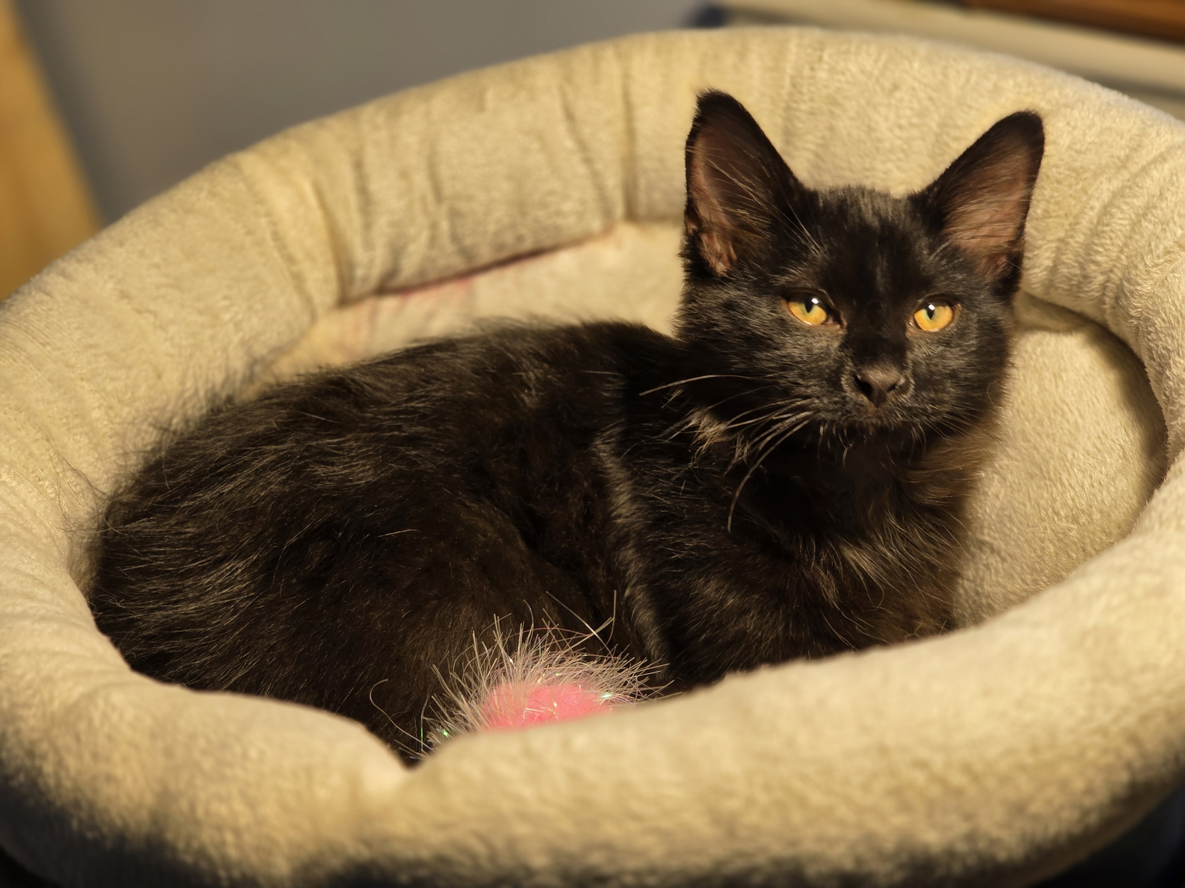 This sweet girl is a cuddle bug who also knows how to keep herself entertained with her playful, vocal personality. She loves to explore her surroundings, purr her way into your arms, and follow you around for affection and fun.
