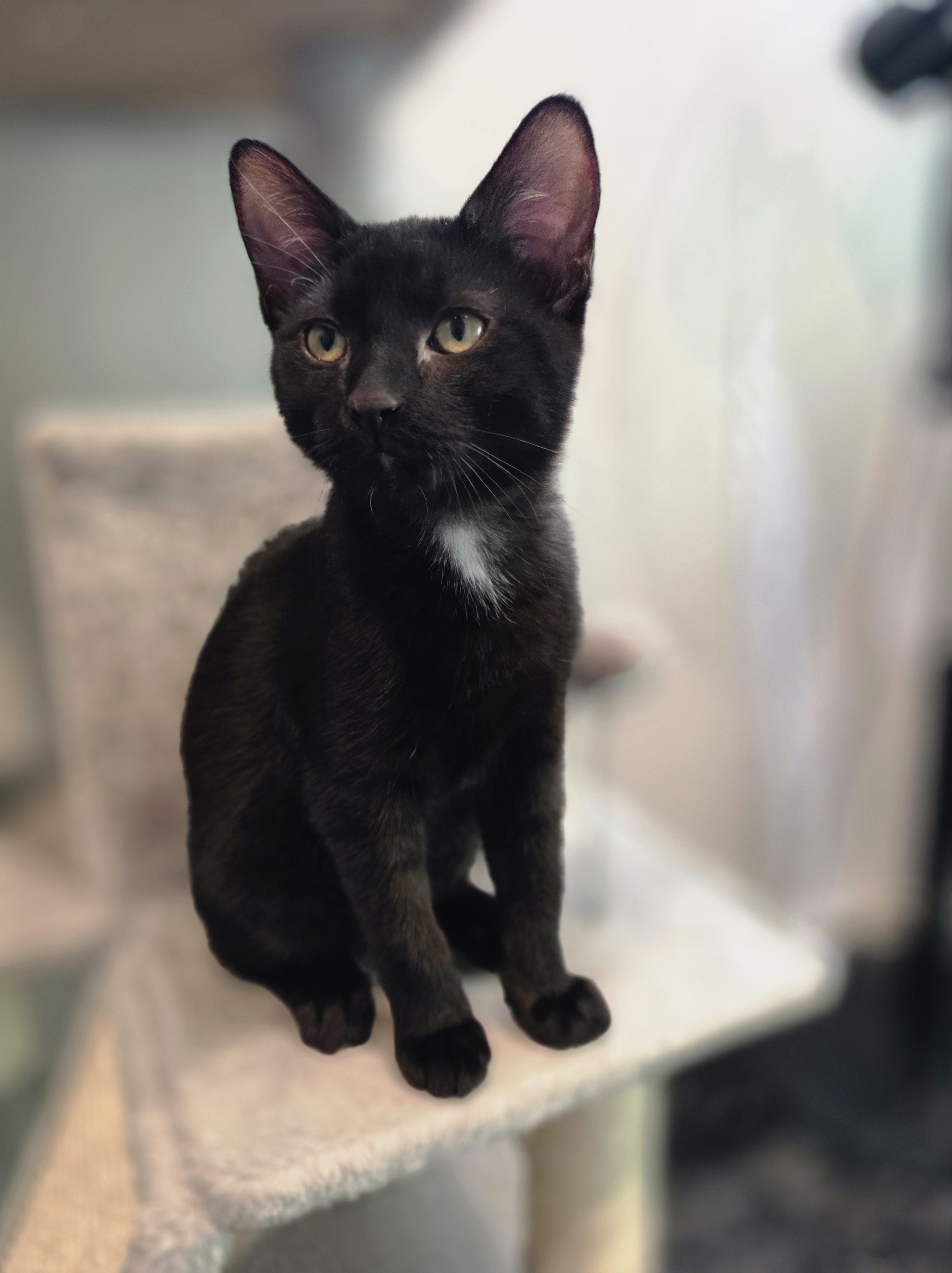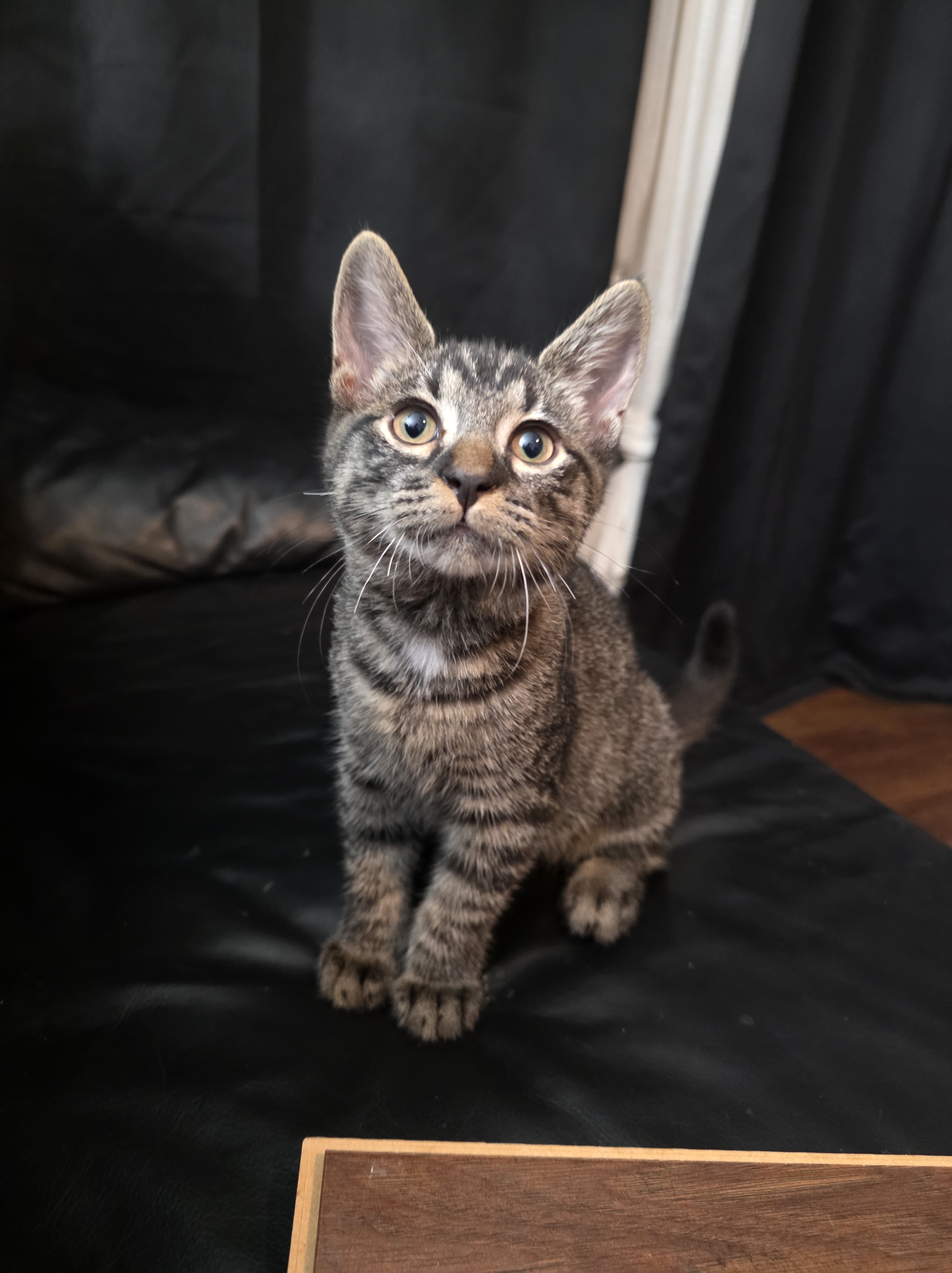 Bio: Sora is a stunning mackerel tabby with big, expressive eyes that will absolutely melt your heart. At just 15 weeks old, she already knows how to steal the spotlight and your lap!