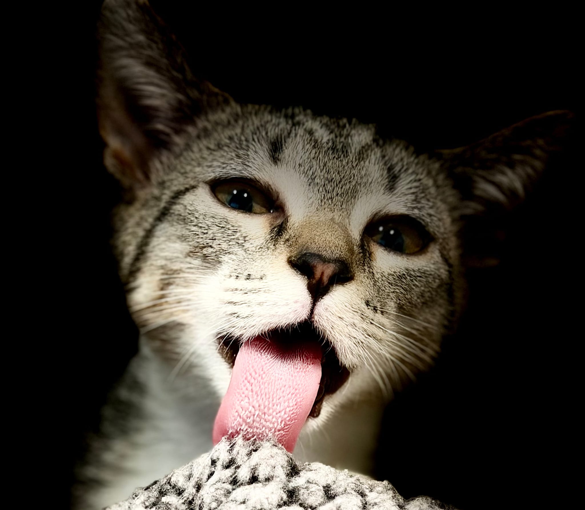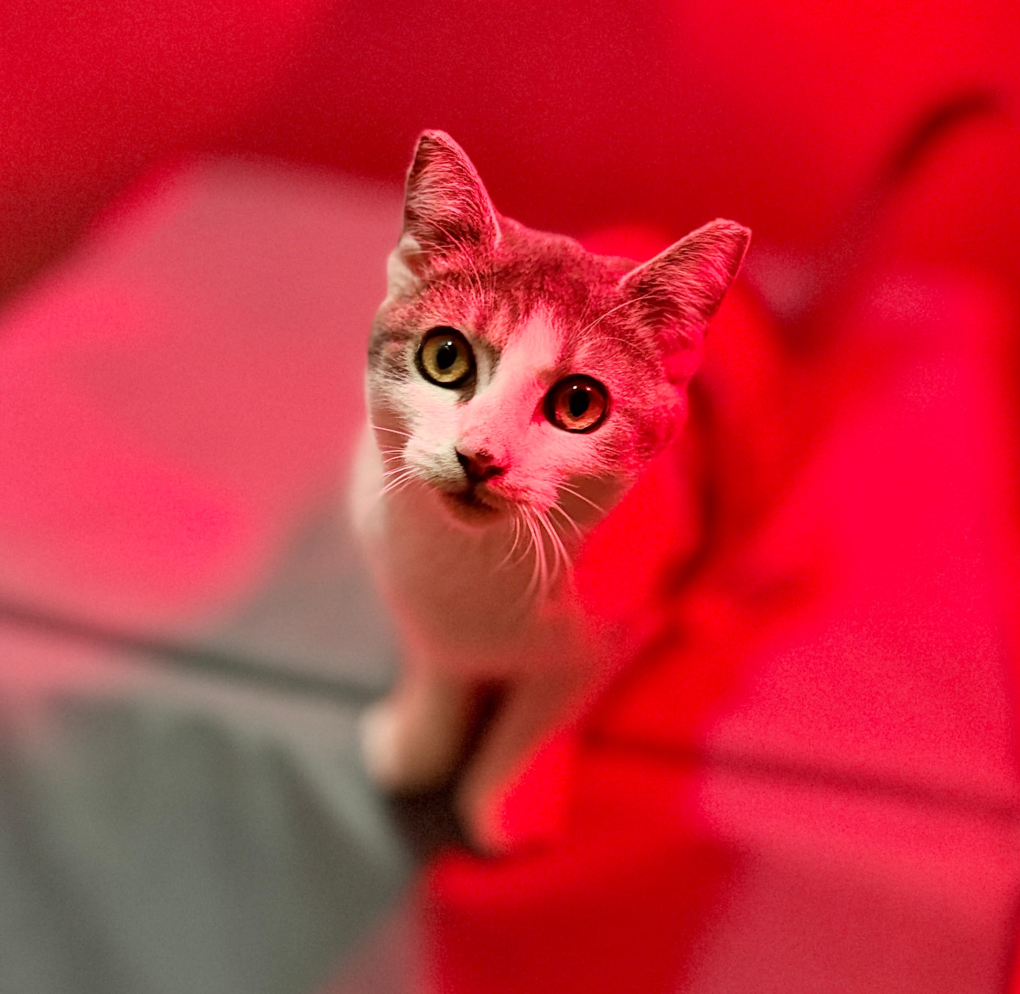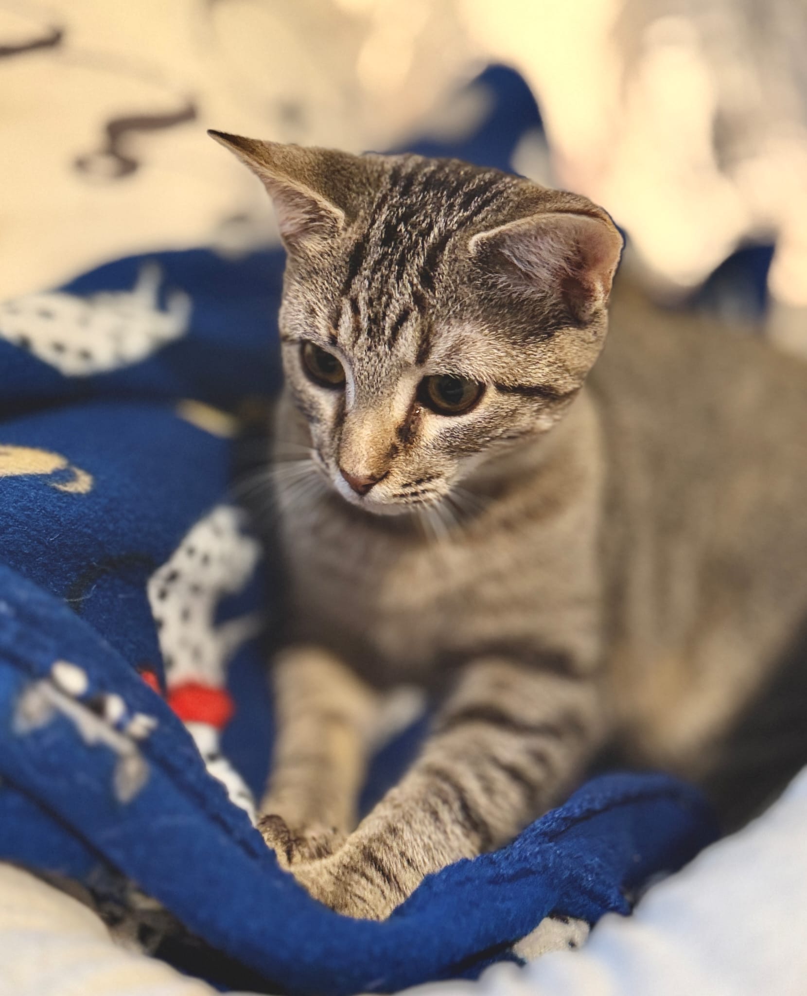 Her nystagmus gives her a unique look, like she’s always taking in the whole room… but this girl can CHASE, POUNCE, and PLAY just like any other kitten. Maybe even harder.